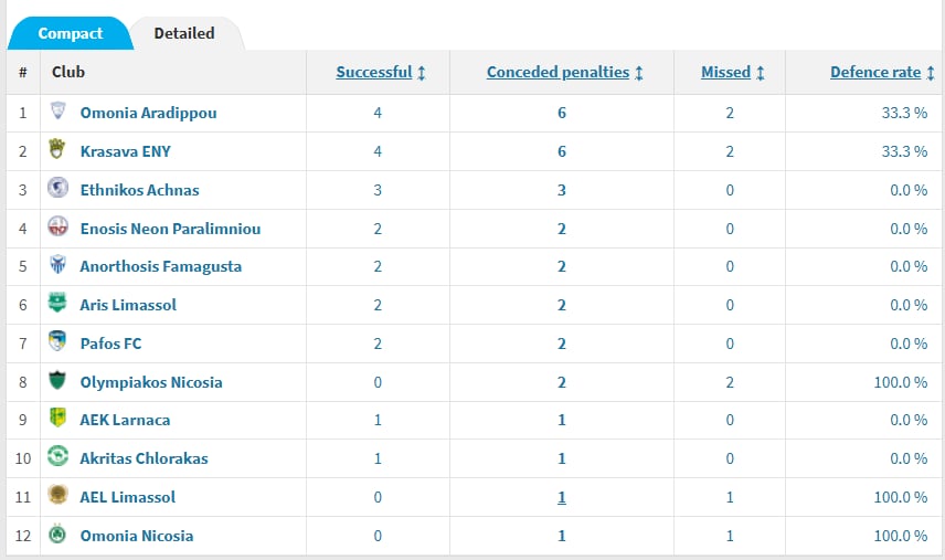 Επιπλέον, μόλις δύο ομάδες δεν υπέπεσαν σε παράβαση πέναλτι, κι αυτές είναι το ΑΠΟΕΛ και ο Απόλλων.