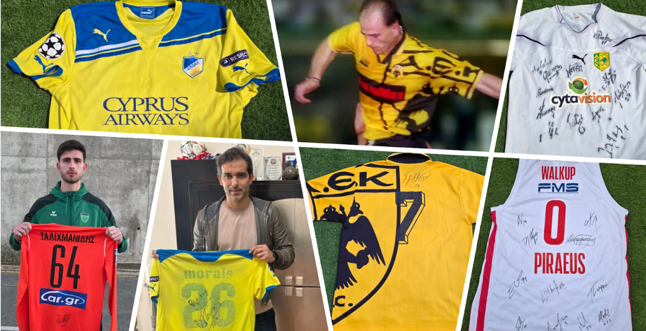 Στις δημοπρασίες, οι οποίες λήγουν το βράδυ της Δευτέρας του Πάσχα, βρίσκονται επίσης μεταξύ άλλων, φανέλα του Τόμας Γουόκαπ με τις υπογραφές των καλαθοσφαιριστών του Ολυμπιακού, φανέλα του Γιάννη Σκοπελίτη από τον αγώνα της ΑΕΚ με την Ρόζενμποργκ το 2011 και φανέλα του Χρήστου Ταλιχμανίδη (ΠΑΟΚ) σεζόν 2020/21.