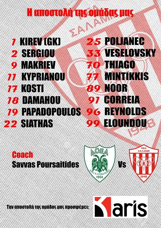 Ενημέρωσε για την αποστολή της η Νέα Σαλαμίνα ενόψει του αγώνα με τη Δόξα, με τους τρεις τραυματίες να μένουν εκτός.