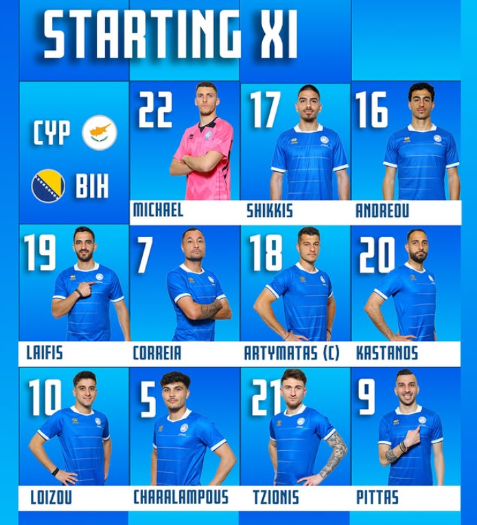 Ο Ομοσπονδιακός μας τεχνικός επέλεξε τον Μιχαήλ για τη θέση κάτω από τα δοκάρια, με τους Λαΐφη και Στέλιο Ανδρέου στο κέντρο της άμυνας. Στο δεξί άκρο θα είναι ο Σιήκκης και αριστερά ο Κορέια.