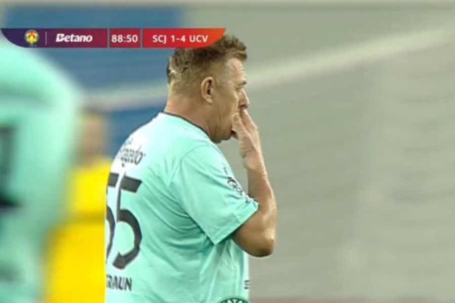 Η στιγμή που ξεχώρισε ήταν η είσοδος στον αγωνιστικό χώρο του 61χρονου ιδιοκτήτη της Κλουζ, Αουρελιάν Γκίσα. Γεννημένος στις 25 Απριλίου 1964, ο Γκίσα είναι κτηνίατρος στο επάγγελμα, αλλά ζει για το ποδόσφαιρο.