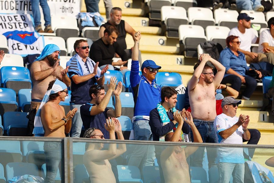 Τι λοιπόν κι αν το Σαν Μαρίνο προερχόταν από τη συντριβή με 10-0 απ’ την Αυστρία; Τι κι αν βρίσκεται κολλημένο στην τελευταία θέση (210) της ΦΙΦΑ; Κοντά στους εκατό φίλους του μικρού ετούτου κράτους (35 χιλιάδες κάτοικοι) έδωσαν το παρών τους στη δεξιά γωνία της κεντρικής εξέδρας του γηπέδου στο Σεραβάλε, προσπαθώντας να κάνουν την παρουσία τους όσο πιο αισθητή γινόταν! Ντουντούκα, συνθήματα, σημαίες, κασκόλ...