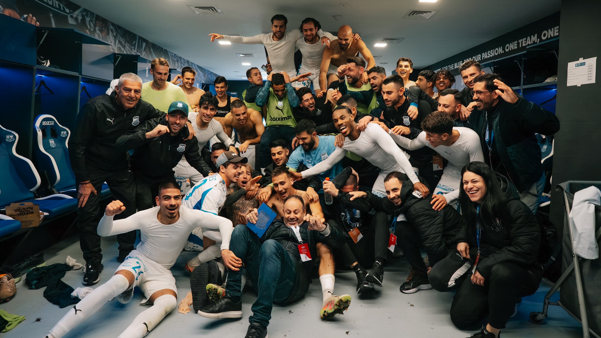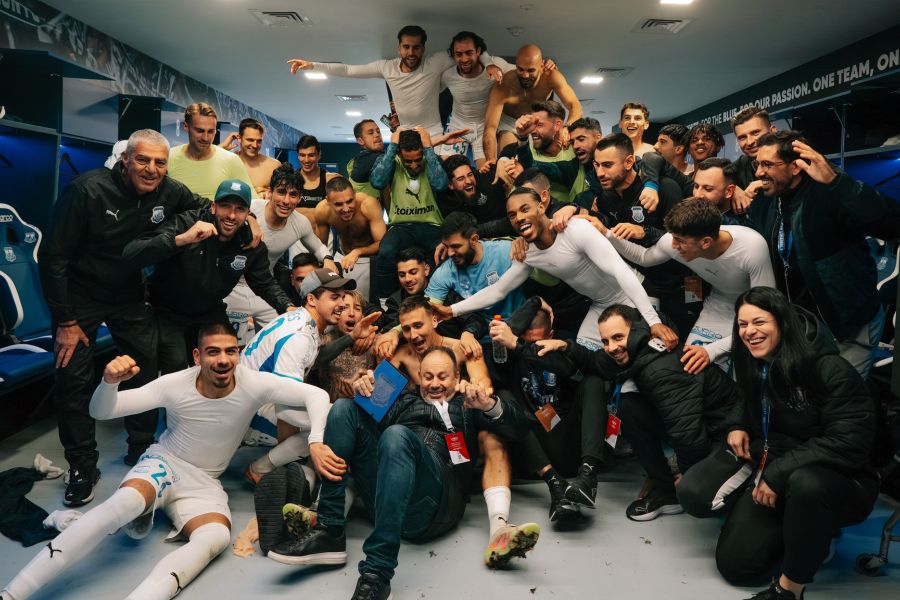 Μετά το τέλος του αγώνα, οι «κυανόλευκοι» πόζαραν με χαμόγελο στα αποδυτήρια, βγάζοντας μια πανηγυρική φωτογραφία.