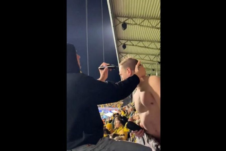 Αμέσως μετά το φινάλε, ένας συνοπαδός του έβγαλε την ξυριστική μηχανή και άρχισε να κουρεύει τον φίλο, ο οποίος δεδομένα πρόλαβε να κουρευτεί πριν τον φίλαθλο της Μάντσεστερ Γιουνάιτεντ.
