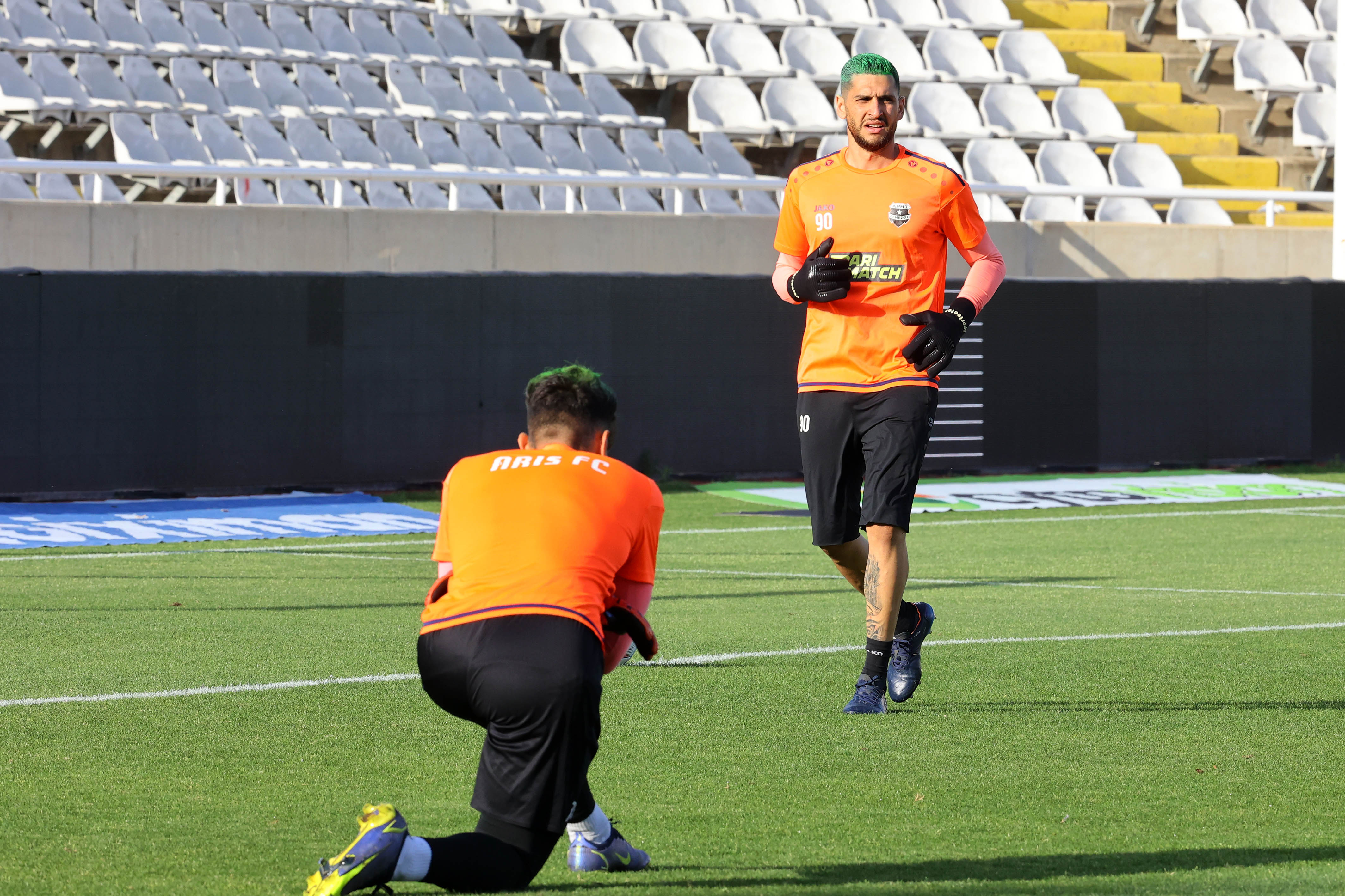 Όπως μπορείτε να δείτε απ’ τις πιο κάτω φωτογραφίες, οι παίκτες του Αλεξέι Σπιλέφσκι παρουσιάστηκαν στον αγωνιστικό χώρο του ΓΣΠ με πράσινο μαλλί. Εξαίρεση αποτελεί ο Κακόριν, που έβαψε το μαλλί του με ροζ χρώμα!