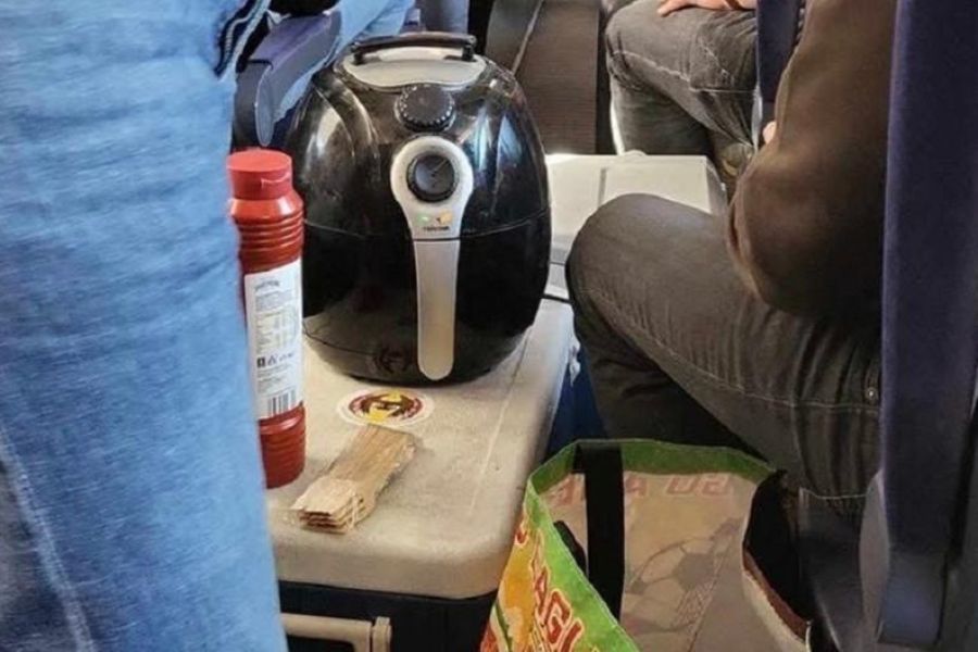 Σε αυτή, διακρίνονται Ολλανδοί φίλαθλοι να ταξιδεύουν με τρένο για την Αυστρία, έχοντας μαζί τους ένα... air fryer! Συσκευή που αποτελεί σίγουρα αναπόσπαστο κομμάτι για πολλά νοικοκυριά, αλλά σίγουρα δεν είχαμε συνηθίσει να βλέπουμε σε οπαδικές εκδρομές...