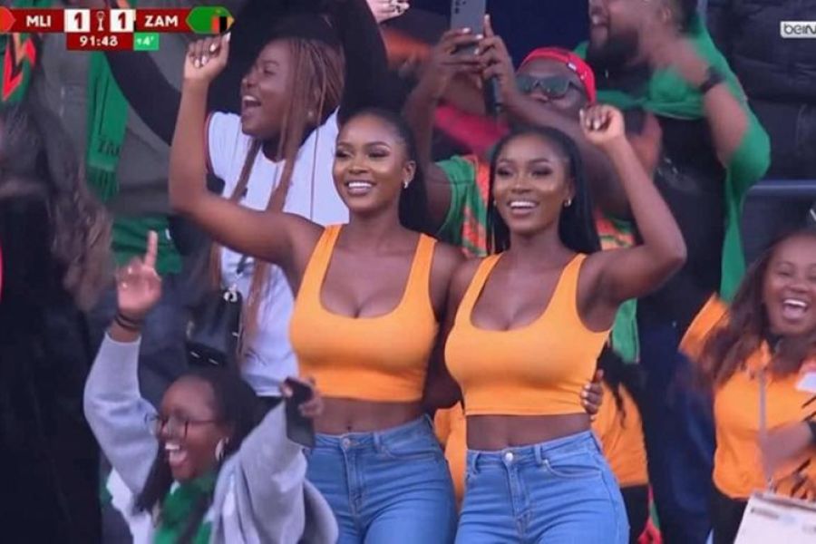 Πέρα από τον σκόρερ, που… έφαγε τα μούτρα του στην προσπάθεια να πανηγυρίσει με κωλοτούμπα το γκολ του, την παράσταση έκλεψαν δύο πανέμορφες φίλαθλοι της Ζάμπια, που μάλιστα ήταν πανομοιότυπα ντυμένες.