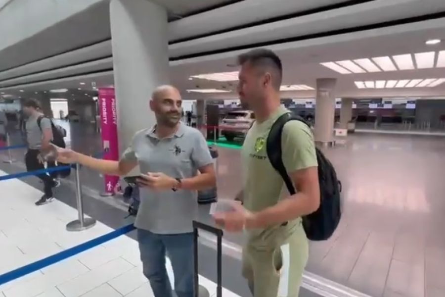 Είχε κέφια ο Ζλάταν Αλομέροβιτς στο αεροδρόμιο της Λάρνακας. Ο κήπερ της ΑΕΚ διέκοψε τις δηλώσεις του Κυριάκου Δημητρίου με ένα πείραγμα, ενώ δήλωσε πανέτοιμος να αντιμετωπίσει τον Ματετά της Κρίστας Πάλας.