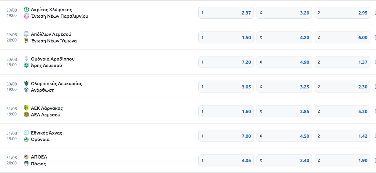 Με ιδιαίτερο ενδιαφέρον αναμένονται οι αγώνες της 2ης αγωνιστικής του πρωταθλήματος. Ξεχωρίζουν το ΑΠΟΕΛ-Πάφος και το ΑΕΚ-ΑΕΛ.