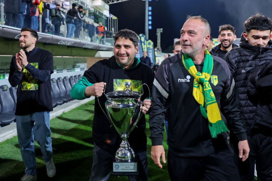 Πριν τη σέντρα του αγώνα με τον Ακρίτα, η φουτσαλική ΑΕΚ έκανε το γύρο του θριάμβου, έχοντας στα χέρια της το τρόπαιο του Κυπέλλου.